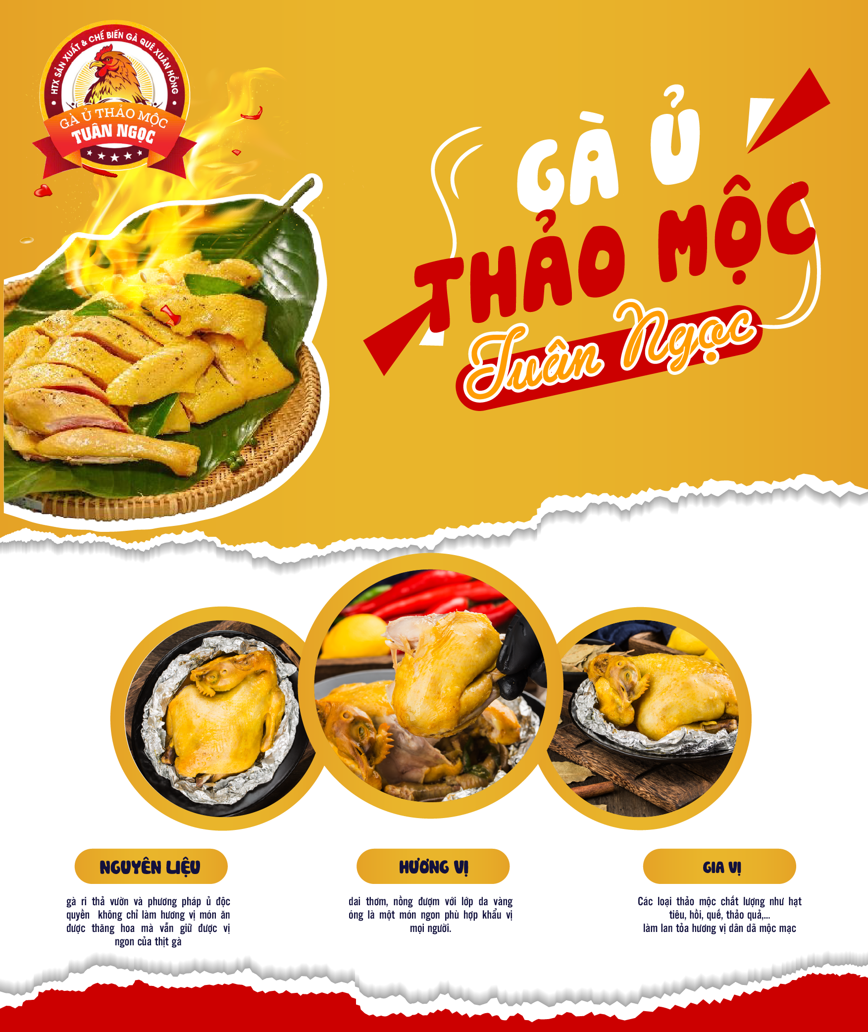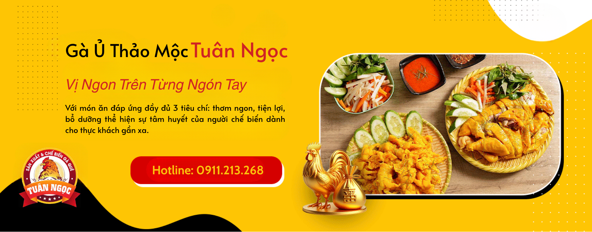 Với món ăn đáp ứng đủ 3 tiêu chí: thơm ngon, tiện lợi, bổ dưỡng thể hiện sự tâm huyết của người chế biến dành cho thực khách gần xa. Gà ủ thảo mộc Tuân Ngọc tự tin chiều lòng tất cả các vị khách khó tính nhất, từ những bữa ăn gia đình đến những buổi tụ tập bạn bè đến những dịp lễ, tết.