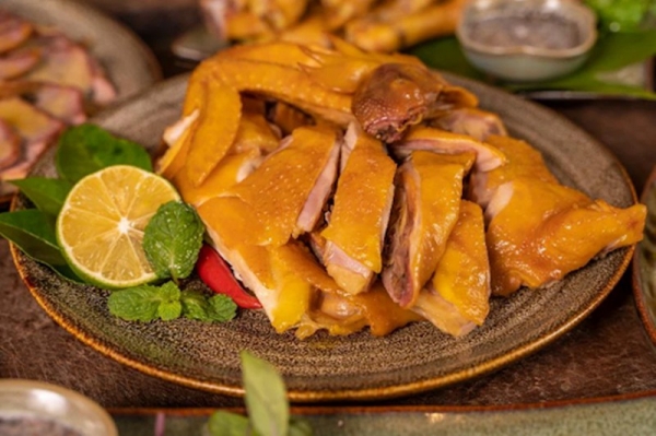 Gà ủ thảo mộc Tuân Ngọc sau khi hoàn thành hấp dẫn thực khách chính là màu vàng tươi như nắng bắt mắt của phần da gà. Hơn nữa, khi thưởng thức phần da giòn, thơm cùng miếng thịt dai, từng thớ thịt hồng hào, mềm ngon đậm đà.